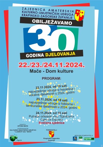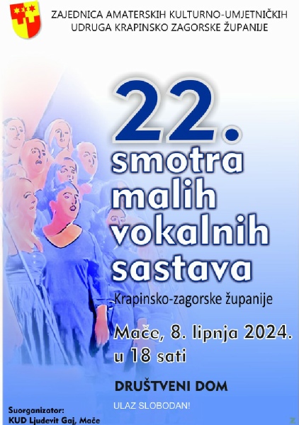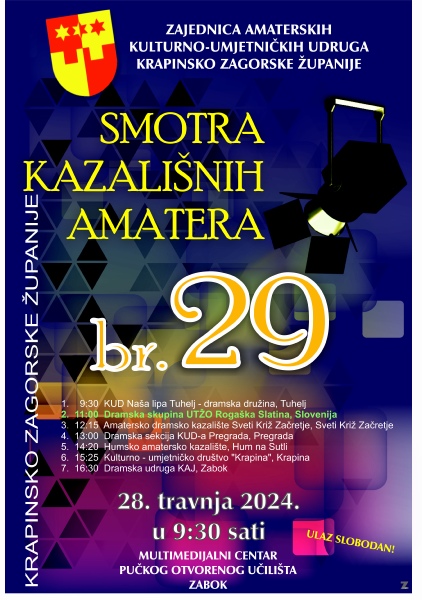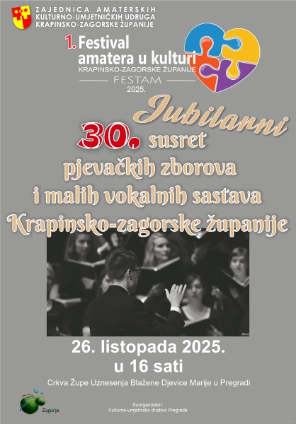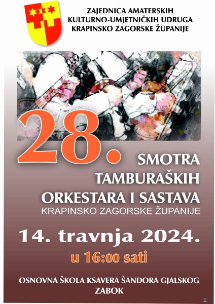 ZAJEDNICA AMATERSKIH KULTURNO UMJETNIČKIH UDRUGA KRAPINSKO-ZAGORSKE ŽUPANIJE SMOTRE U 2024. GODINI SMOTRE U 2025. GODINI Novije fotografije sa smotri možete pogledati na facebook stranici zajednice!   Link Starije fotografije sa smotri možete pogledati ovdje!